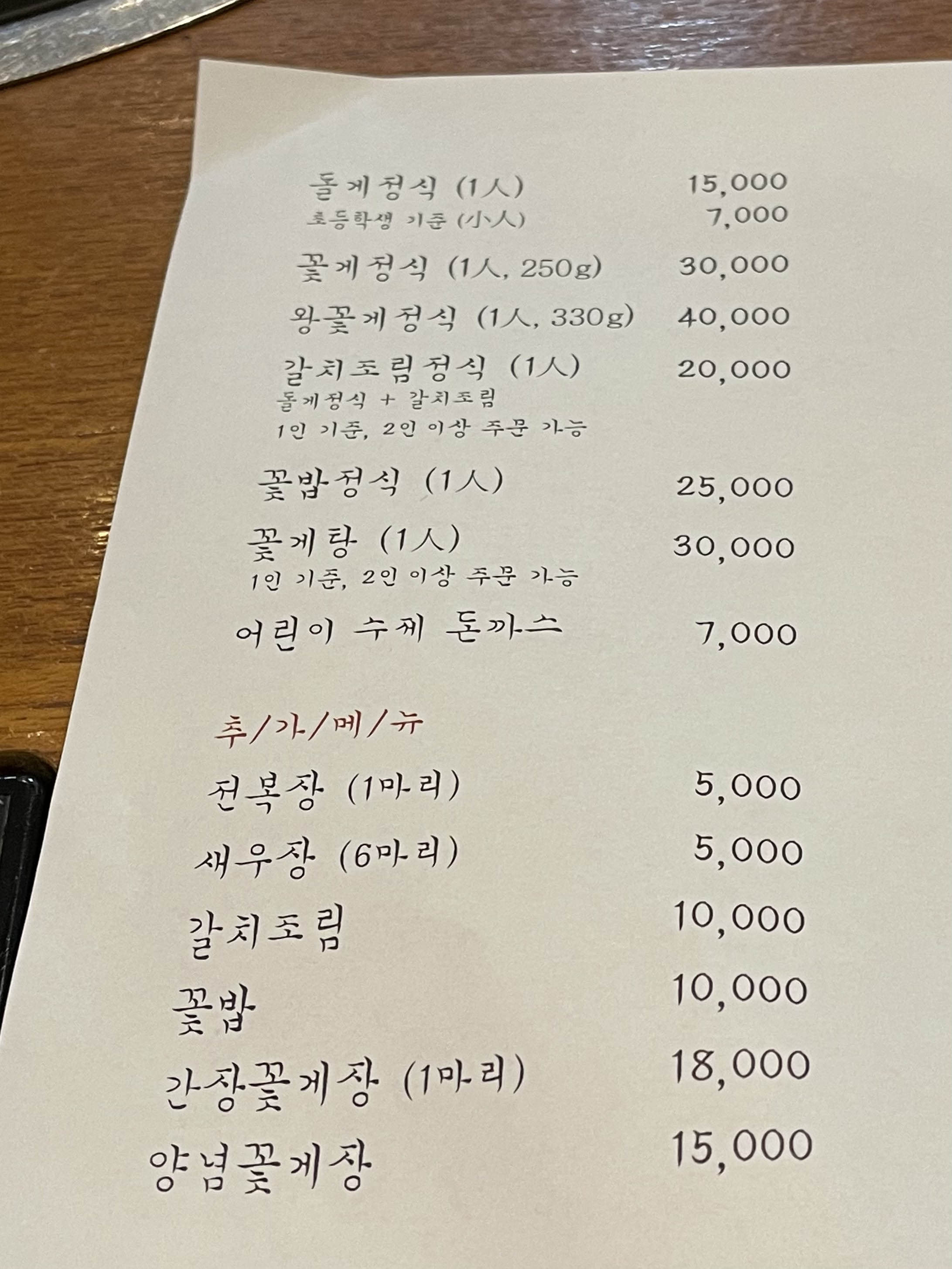 나는 게장을 별로 안 좋아해서 그런지 몰라도 이 곳 게장도 약간 비린 맛이 난다. 돌게보다 꽃게가 덜 비리대서 꽃게로 시켰는데 .. 흠
