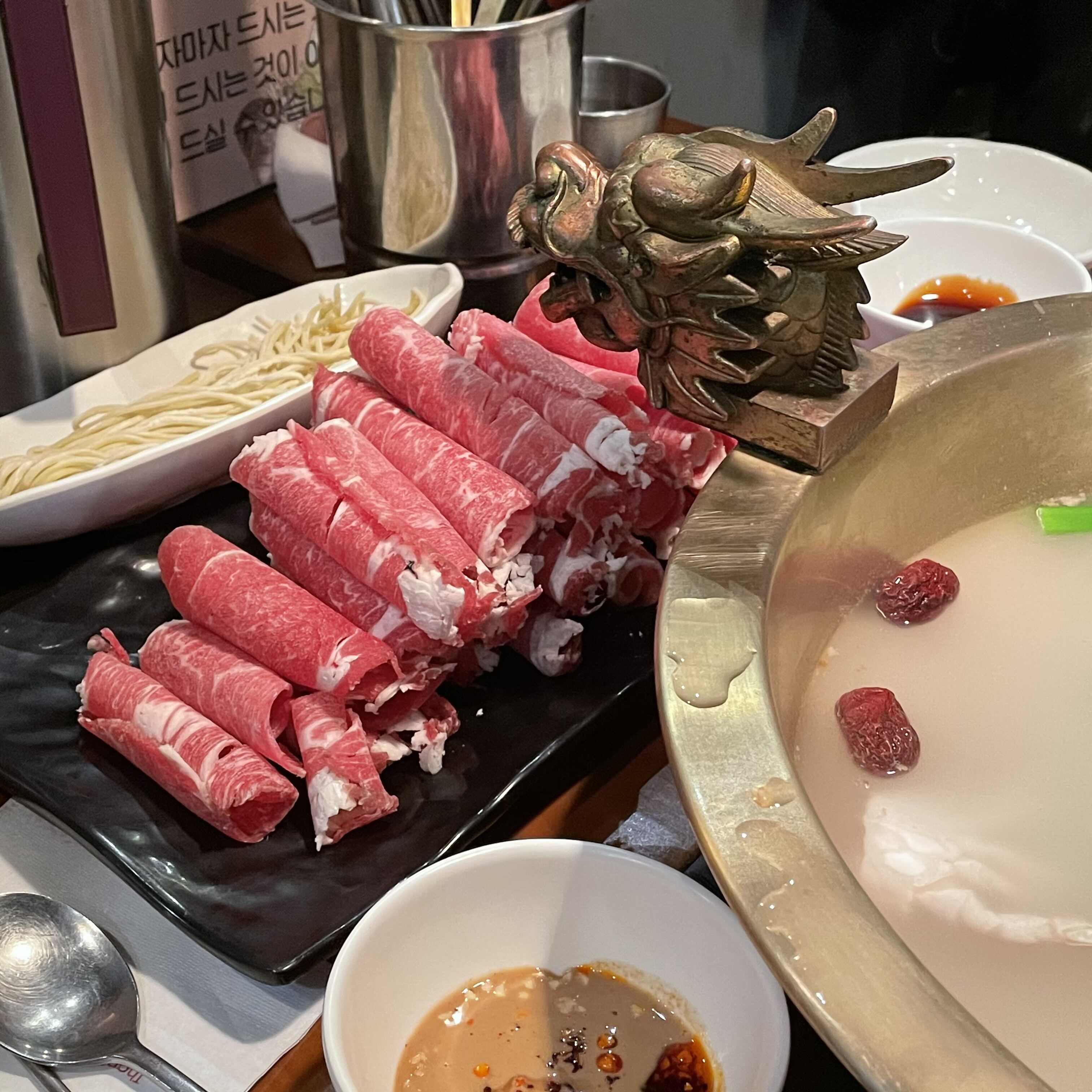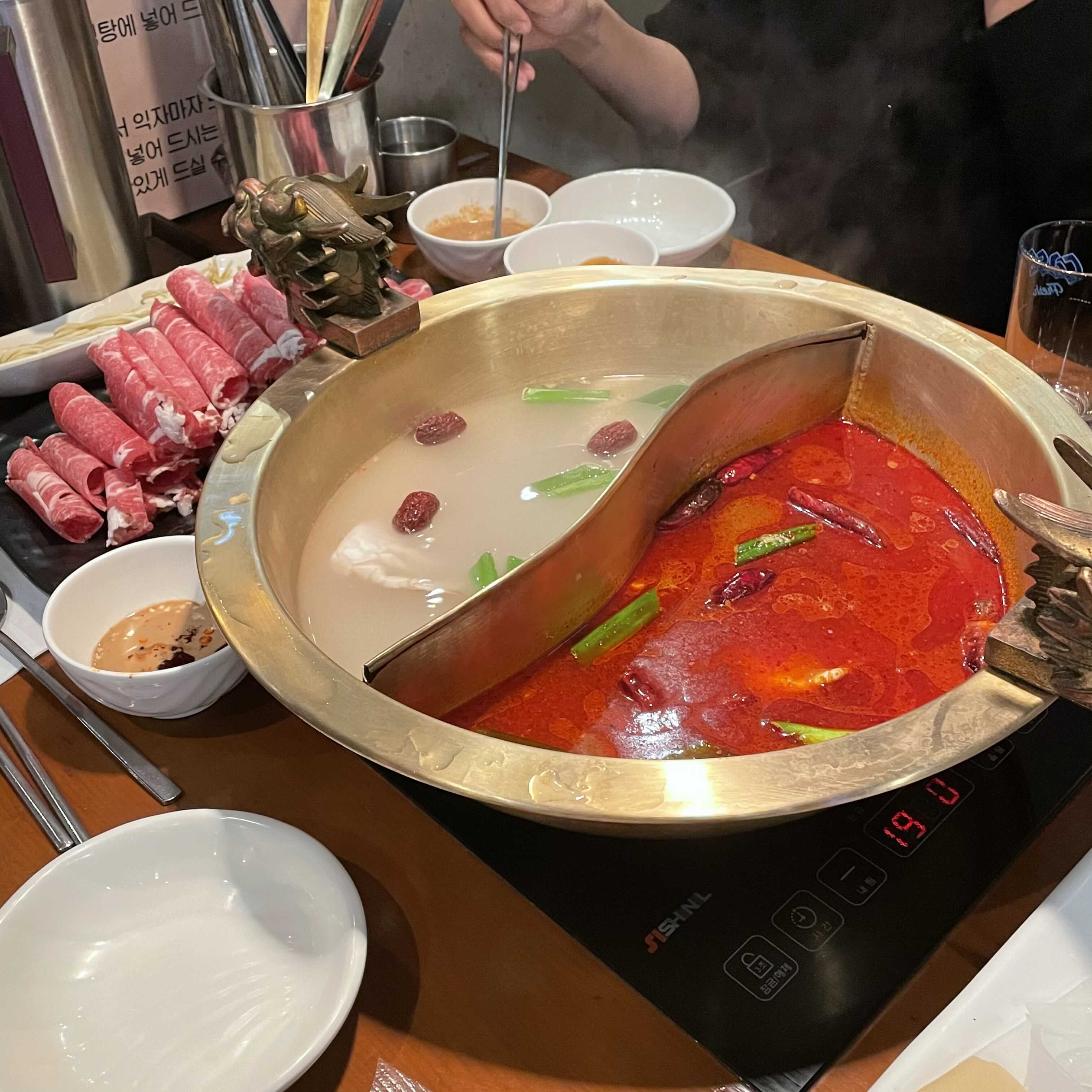 훠궈 한두번 먹어봤는데 여기는 마라맛이 좀 어려운 사람도 쉽게 접할 수 있는 훠궈맛이었다.